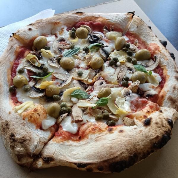 paradicsomszósz, bazsalikom, gomba, articsóka, olívabogyó, kapribogyó, mozzarella sajt, olívaolaj - 32 cm