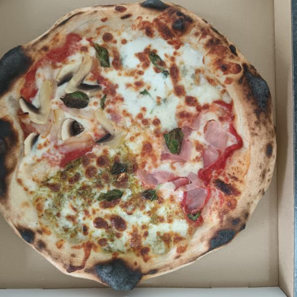 paradicsomszósz, érlelt sonka, bazsalikom, mozzarella sajt, szarvasgombakrém, olívaolaj - 32 cm