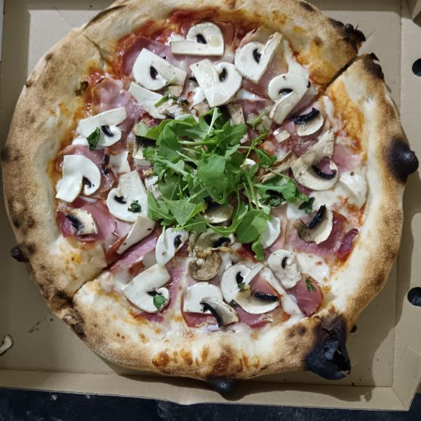 paradicsomszósz, sonka, gomba, bazsalikom, mozzarella sajt, olívaolaj - 32 cm
